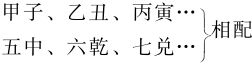 堪舆术中,把人的生辰年份和八卦的配合叫做“命卦”,它是以洛书九宫和六十甲子而推论的,其方法称为“三元命卦”(表6-2)。所谓“元”就是六十甲子纪年法的一周,三元就是三个六十甲子的周天,计一百八十年。第一个六十甲子称为上元,第二个称为中元,第三个称为下元。每元的干支年都依照洛书九宫来排列,它的次序是一坎、二坤、三震、四巽、五中、六乾、七兑、八艮、九离。按堪舆术的排列,凡是上元六十甲子中所生男子,都是从一坎起甲子逆行,即按甲子、乙丑,丙寅……的顺序依次配一坎、九离、八艮……。例如,男子上元甲子生,甲子在一坎,乙丑在九离,丙寅在八艮,丁卯在七兑,戊辰在六乾,己巳在五中,庚午在四巽,辛未在三震,壬申在二坤,癸酉在一坎,周而复始,六十甲子与八卦九宫相配合,最后至癸亥而终于五中。五在九宫的中央无卦可配,男子便寄之于坤卦。凡是女子在上元六十甲子中所生,都是从五中宫起甲子顺行,即按: